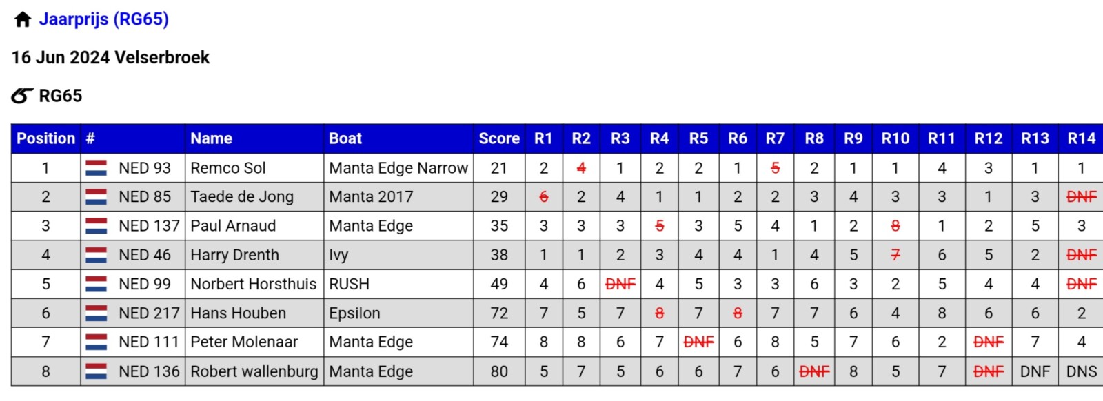 Uitslag jaarprijs RG65 16 juni 2024 Velserbroek