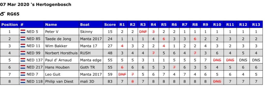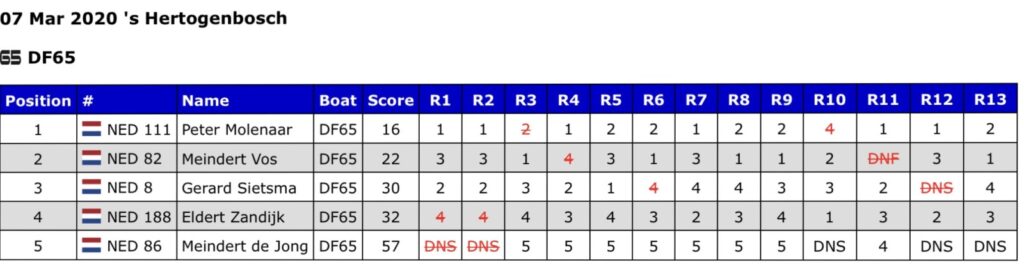 Zaterdag is de tweemaandelijkse DF95 winterserie gevaren met een groot en internationaal wedstrijdveld, waarbij 11 Nederlands, 2 Duitsers en 1 Belg met elkaar de strijd aan zijn gegaan onder leiding van Paul d’Arnaud.