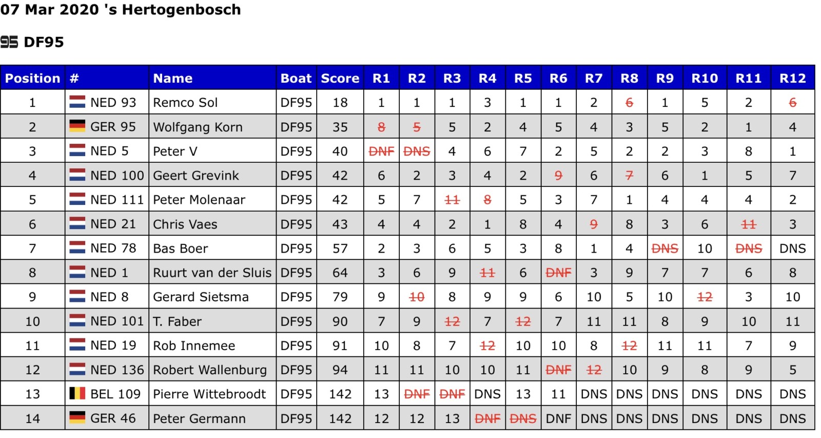 Zaterdag is de tweemaandelijkse DF95 winterserie gevaren met een groot en internationaal wedstrijdveld, waarbij 11 Nederlands, 2 Duitsers en 1 Belg met elkaar de strijd aan zijn gegaan onder leiding van Paul d’Arnaud.