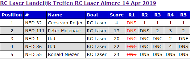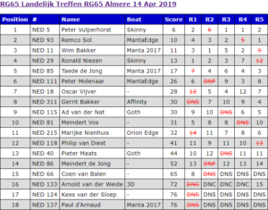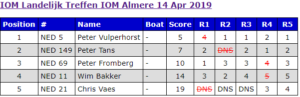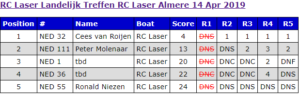 14 april jl. kwamen maar liefst 8 RC klassen aan de start voor het Landelijk Treffen RC Zeilen te Almere met in totaal ruim 40 deelnemers die 70 boten op het water brachten.