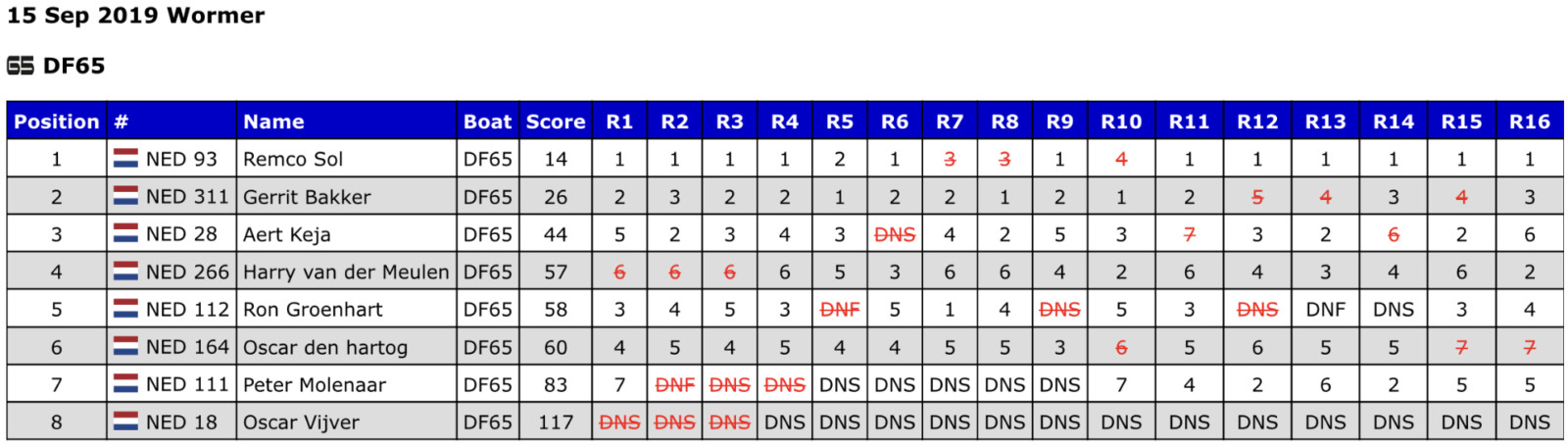 Ondanks het perfect zeilweer en locatie waren er in totaal maar 10 deelnemers, waarvan slechts twee met een RG65 en acht met een DF65.